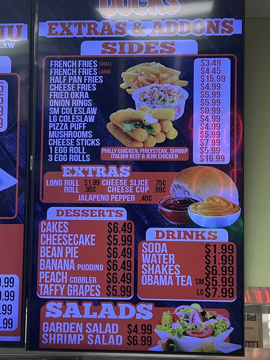 This menu is suitable primarily for lunch and dinner occasions, providing quick service options for casual dining or takeaway. The variety in seafood boxes and sandwiches allows for both individual meals and group orders.